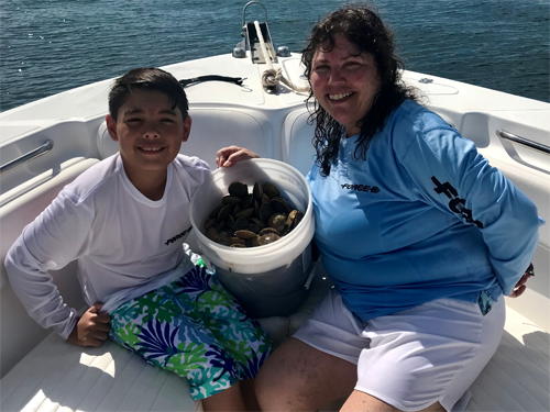 Stephanie & her son had a wonderful day Scalloping & went home with just about their limit of 4 Gallons of tasty Bay Scallops for dinner! Great job!