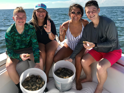 Lauren & company had a Super Fun Day of Scalloping in July & went home with their limit of 10 Gallons of tasty Bay Scallops for dinner! Great job!