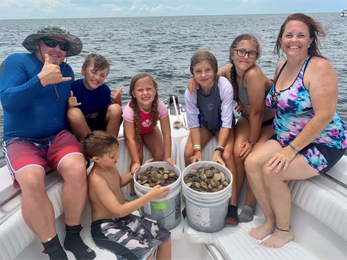 Tami & family had a Super Fun Day of Scalloping in August for their anniversary & went home with their limit of 4 Gallons of tasty Bay Scallops for dinner!